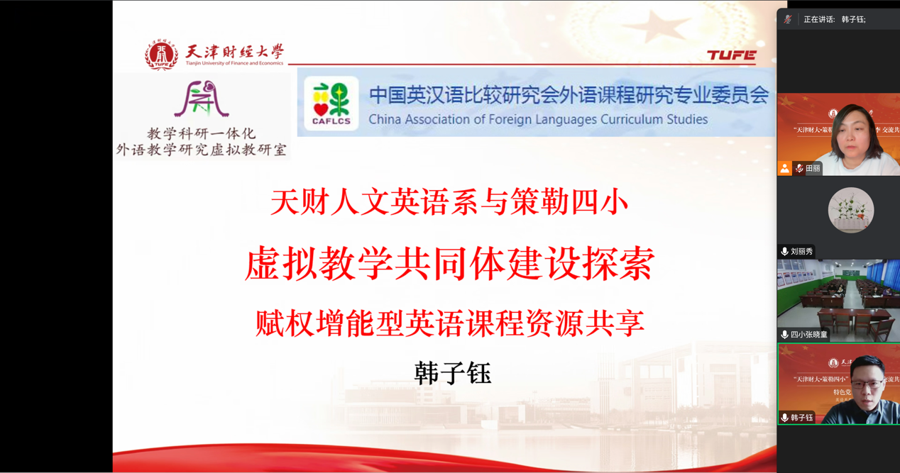 党委副书记孙高昂,英语系教师党支部书记韩子钰、支委宣传委员田丽、组织委员刘丽秀以及英语系优秀党员教师代表李若一教授,携手策勒四小全体英语教师一起于线上共建交流。本次交流旨在搭建东西部跨校外语教学虚拟教研交流平台,提升策勒四小英语教师的业务能力,激发学生对语言学习的兴趣。