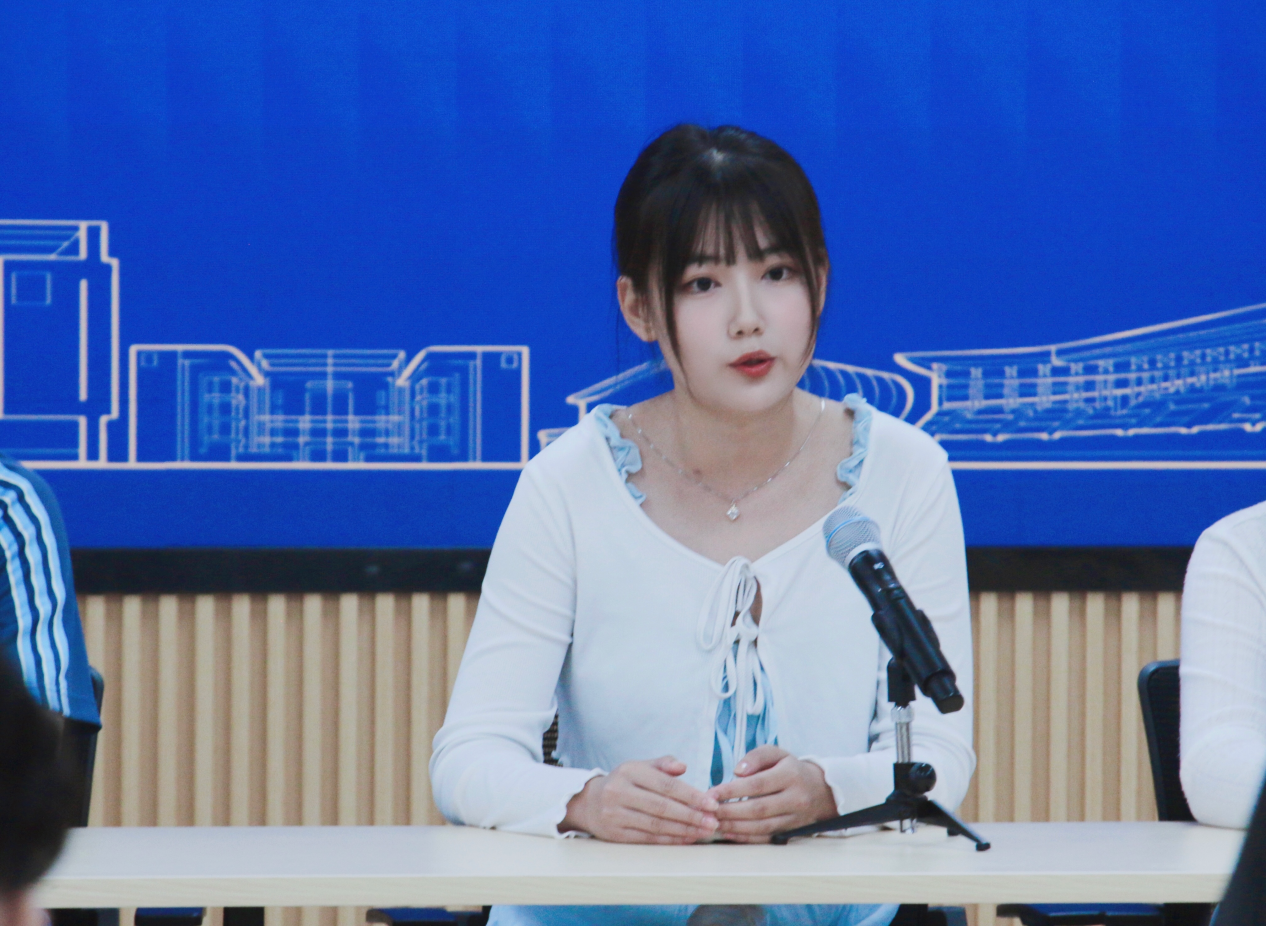2023级日语语言文学专业许静瑶学姐是2024级新生班班导师助理,她介绍了日语语言文学专业查找文献的网站以及本专业可以参加的学科竞赛和学术活动。她希望同学们平衡好学术研究、日常生活以及社会交往之间的关系,在扎实开展学术研究的同时,注重锻炼自身的人际交往能力,向周围优秀的人学习,努力成为更好的自己。