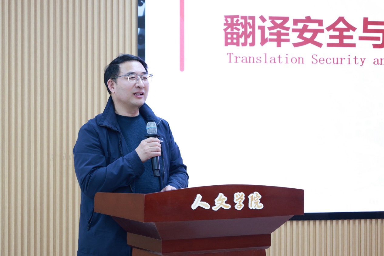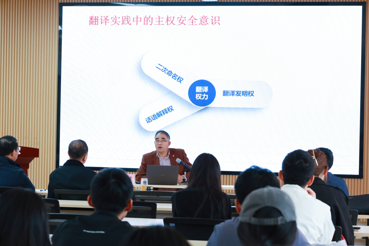 任教授对翻译与安全的关系、翻译安全的内涵、国家安全的内涵、翻译安全的国家性、翻译安全的四种类型等问题进行了阐述,通过翻译实践中一个个生动的案例,论述了国家安全意识、主权安全意识的重要意义,讲解了翻译、译者与国家安全之间的关联与互动。任教授指出,我们应能在国际事件的表述中辨识出关键问题,并运用语言准确表达国家立场。最后,任教授列举了几个未来研究的潜在领域,包括数据驱动的国家翻译安全研究、翻译服务的安全性以及国家翻译治理能力等。讲座结束后,在座师生围绕对外话语体系建设、翻译理论与实践等问题,与任教授进行了交流。任教授的讲座内容丰富且深刻,令在场师生深受启发。
