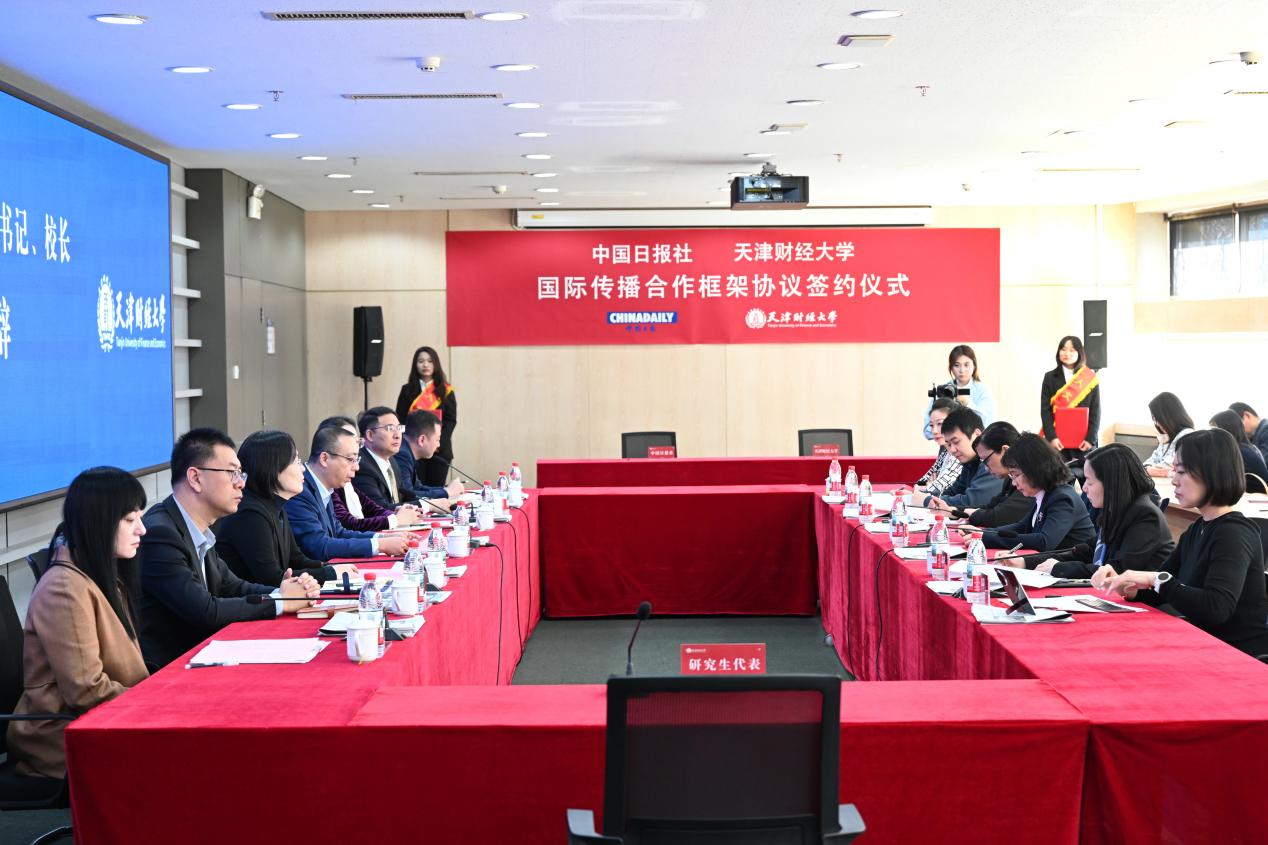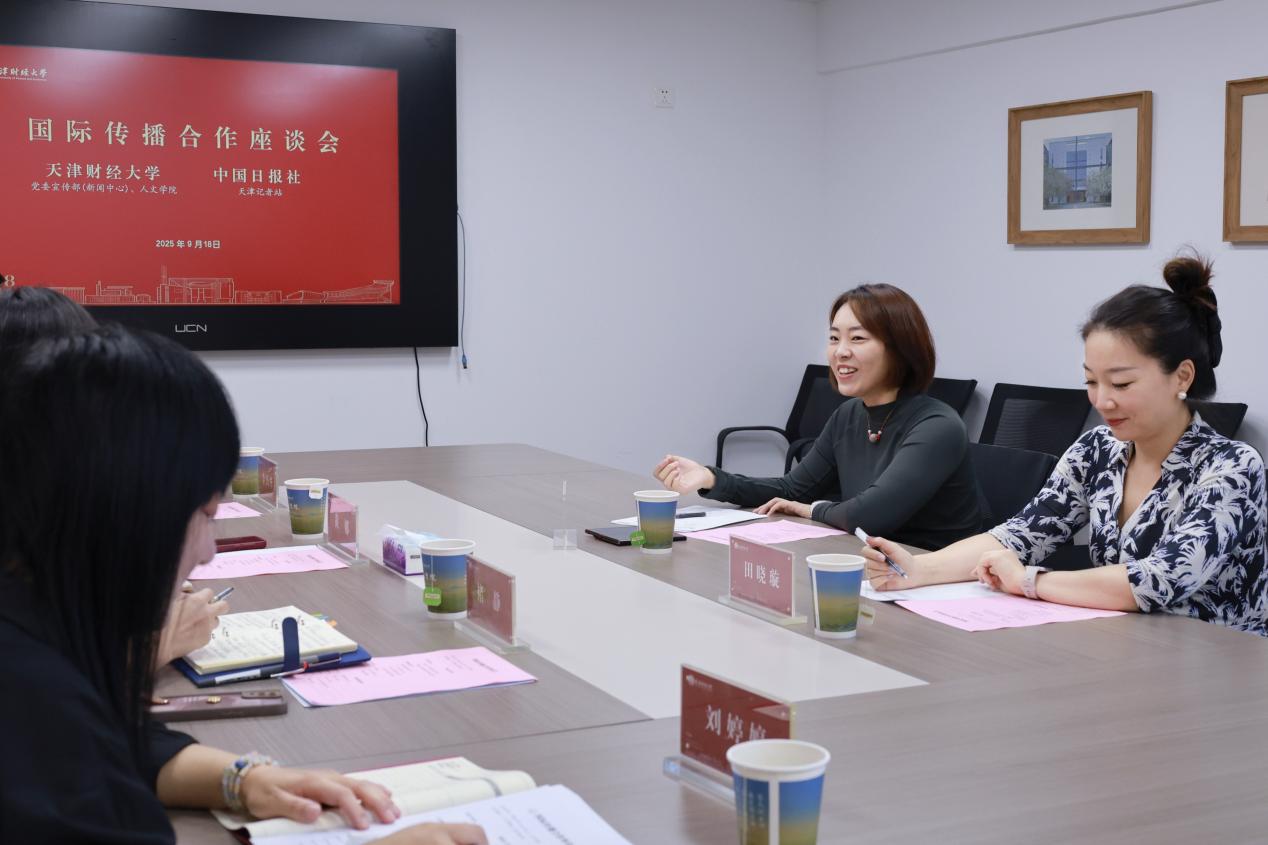黄娜部长对中国日报社在提升我校理论研究成果国际影响力方面所给予的支持,以及助力“天财思享+”等优质品牌成果实现更广泛传播的成效表示感谢,希望未来能够进一步发挥行业与高校在宣传阵地上的优势,通过开展讲座和培训来校介绍最新国际传播案例,同时进一步拓展合作模式,将学校的理论研究、思政工作等成果在对外宣传平台上实现更加长远的品牌效应。