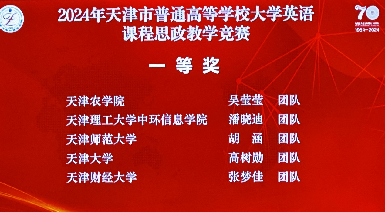 本次大赛由天津市教育委员会主办,天津大学承办,高等教育出版社协办,旨在深入学习贯彻习近平新时代中国特色社会主义思想及2024 年全国教育工作会议精神,推进党的二十大精神进教材、进课堂、进头脑,持续推动我市高校大学英语课程思政高质量建设,引导教师充分挖掘大学英语课程思政元素,全面提升大学英语教师课程思政教学能力。经过初赛筛选与复赛评审,16个团队的作品入围决赛,经过现场抽取材料、制作课件、说课展示、回答问题等环节,老师们展示了专业知识与思政教育融合的教学艺术。