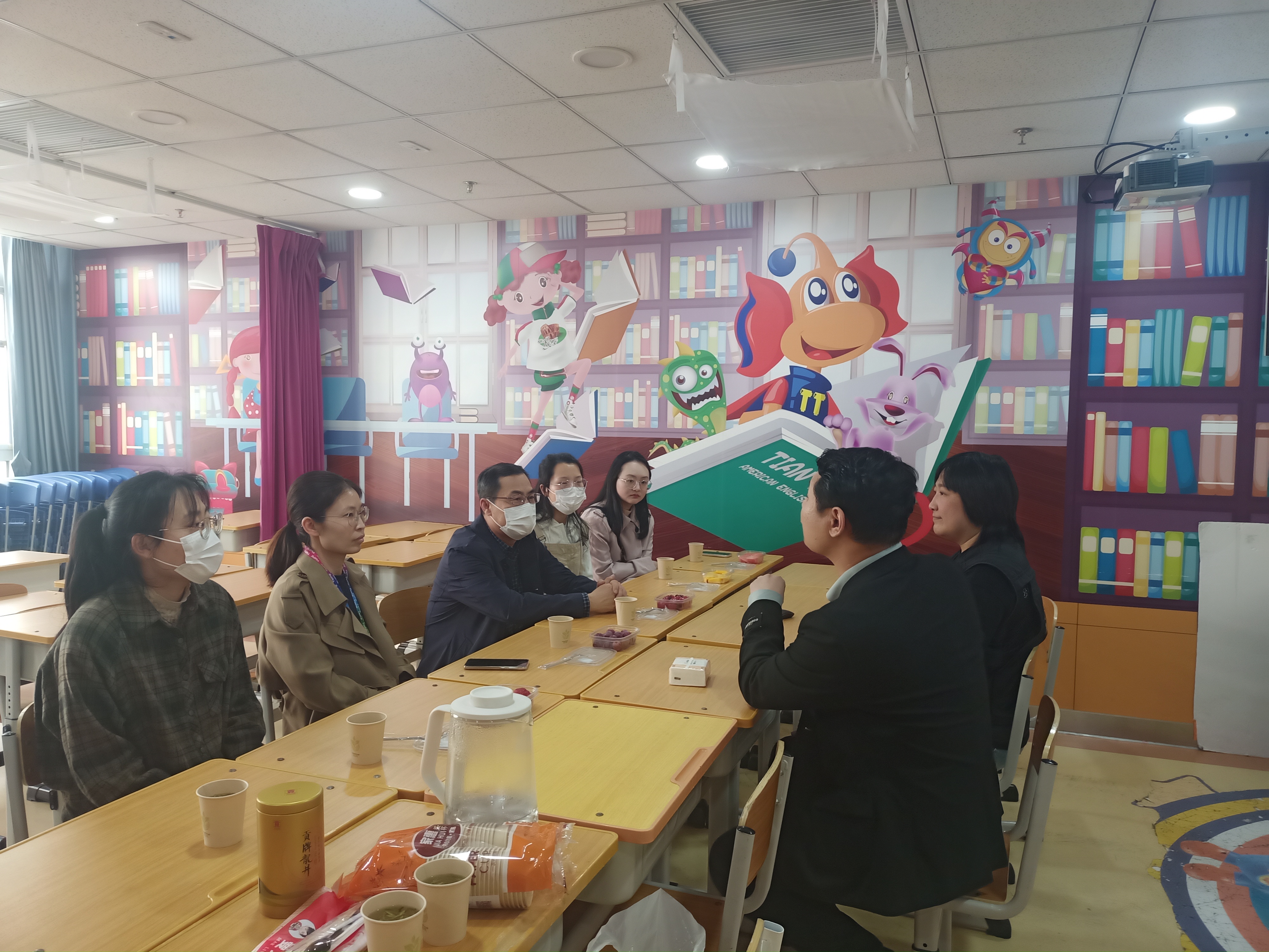 天津天童美语学校河西分校校长岳鹏、招聘部张倩老师对学院的来访表示热烈的欢迎,带领大家先后走访考察了天津天童美语河西分校教学区、办公区、行政管理区以及党建部门等,对该学校的发展历史、课程设置、师资队伍等进行讲解。座谈会上,李金亮书记介绍了六合彩
